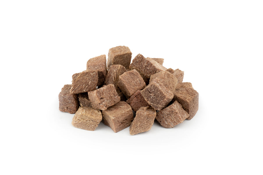 No additives or preservatives—just clean meat freeze-dried into convenient bite-size cubes. Great for training, meals, or on-the-go.